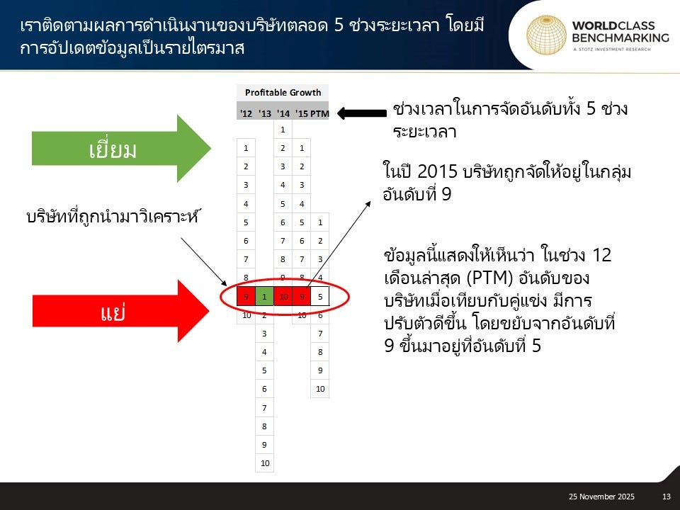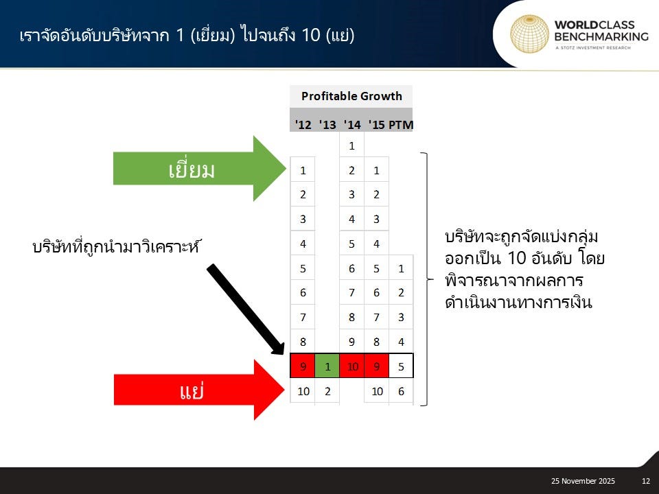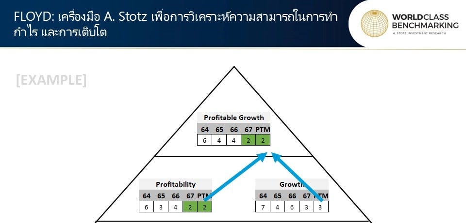 การเติบโตที่มีกำไร มาจากการรวมกันของคะแนนความสามารถในการทำกำไรและการเติบโตของบริษัท